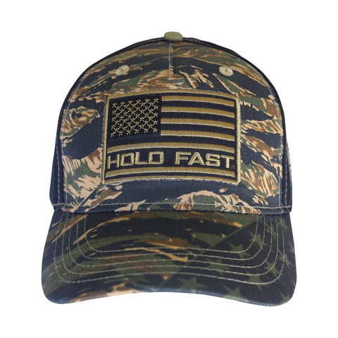 Share your faith in America with this bold take on camouflage. Our “HOLD FAST Camo” Cap offers a rugged blend of patriotism and jungle style. The flag of the United States of America is worthy of celebration! We can stand up for our flag because of the sacrifice of those who serve in the United States Armed Forces, and ultimately because of the sacrifice of our Lord and Savior, Jesus Christ, on the cross at Calvary. When you pledge allegiance to the flag or see those colors flying in the breeze, think on these things.
