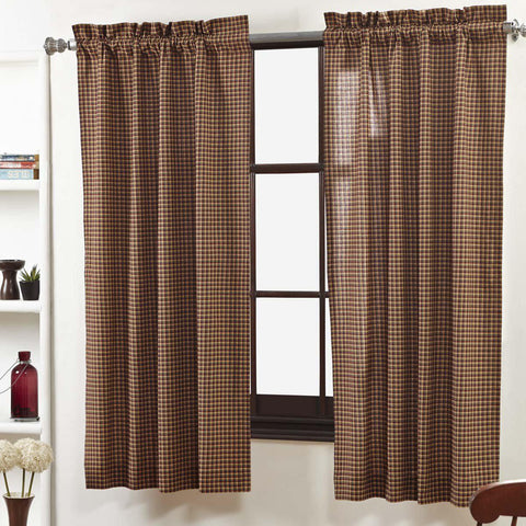 Our Primitive Patch Plaid Short Panel Set brings Americana inspiration to any room with small scale deep red, khaki and navy plaid and lined with white cotton.