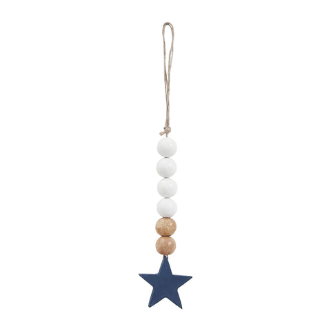 • Patriotic Star & Bead Design: Features a hanging strand of 4 white and 2 natural color wood beads with a painted 5-point navy blue star, creating a festive and patriotic ornament for your home.