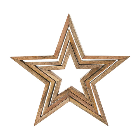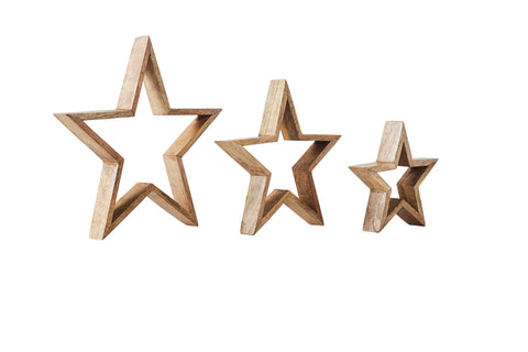 • Crafted from natural wood, these nested stars offer a farmhouse-inspired aesthetic, adding a touch of country charm to any interior space.