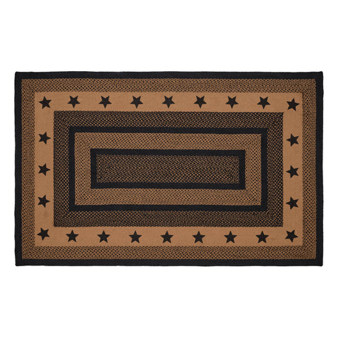 The rectangle braided Blackstone Farm Star Jute Rug is ready for your country home, retreat or cabin with its durable and beautiful construction. Featuring alternating braids in black and tan and black center stenciled 5 point stars for years of enjoyment.