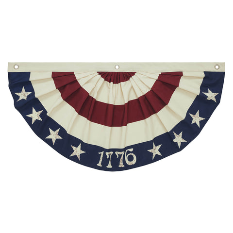 - Patriotic "1776" Design: Features a classic half-circle bunting flag with deep pleats and alternating red and creme stripes, with a navy blue stripe displaying "1776" and stars in creme, celebrating American history.