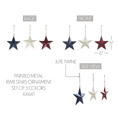 Painted Metal Red White Blue Stars Ornament Set of 3 Colors