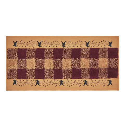 Elevate your Primitive Country bathroom decor with the Pip Vinestar Collection's Bathroom Bath Mat. This rectangular 17x36-inch mat boasts a digital print of Primitive Stars on a natural background, adding a touch of rustic charm to your space. Crafted from absorbent cotton, this rug quickly dries your feet while keeping your bathroom floor dry and safe. The textured surface provides a comfortable and secure grip underfoot, making it ideal for stepping out of the shower or bath. With its waterproof and machine-washable construction, this bath mat combines style and practicality effortlessly.