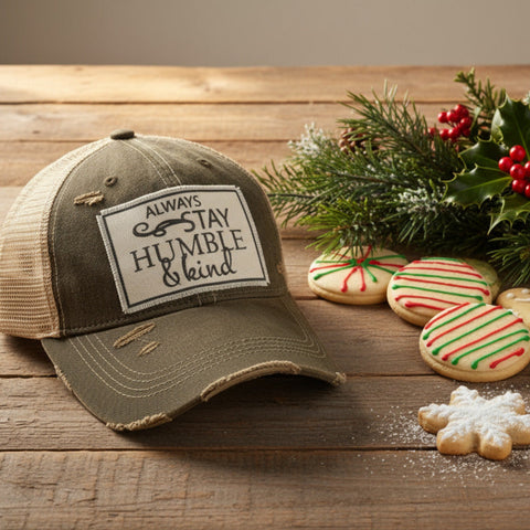 Always Stay Humble & Kind vintage distressed trucker cap.
