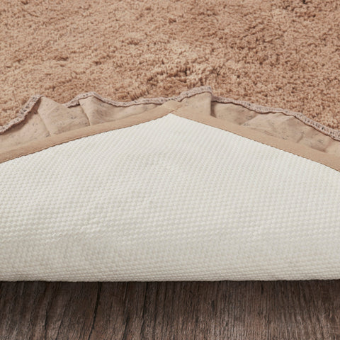 Add a primitive touch to your bath or living space with the Mayzie Bathroom Rug Mat. This beautiful natural tan, raven black, and burgundy comfortable mat coordinates perfectly with any country-themed decor. With a ruffled edge, ruched ruffle, and tufted weave, this check bath mat will find a place in your home for years to come. Reverses to a solid tan rubber underside to prevent slippage.