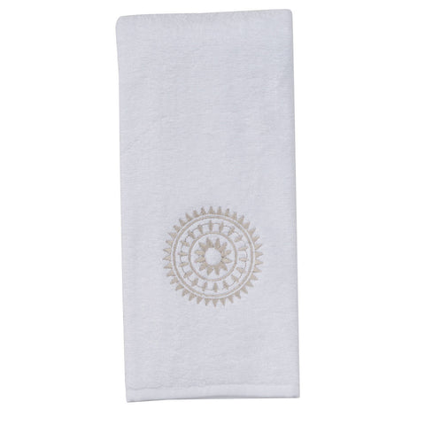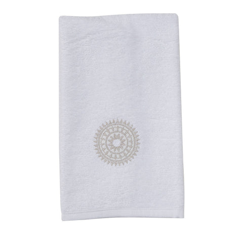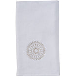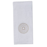 Our embroidered Medallion Terry Towels add a touch of elegance to your farmhouse country bath! Grey cotton terry towel with sunflowers embroidery.