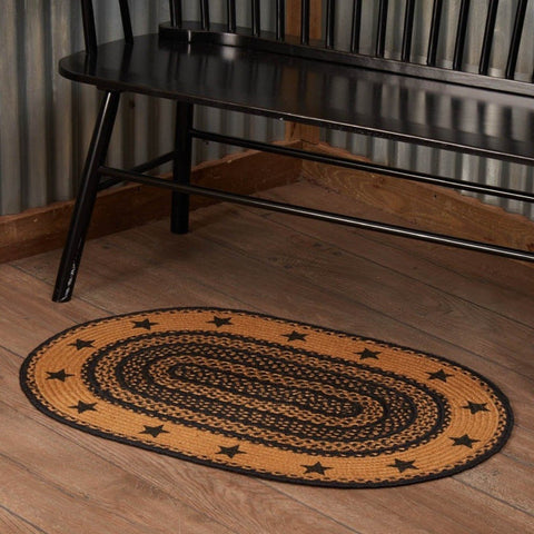 The Blackstone Farm Star Braided Rug Oval is ready for your home, retreat or cabin with its durable and beautiful construction. Featuring alternating braids in black and tan and stenciled black 5-point stars for years of enjoyment.
