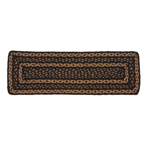 The Blackstone Farm Braided Jute Stair Tread Latex Rectangle adds a classic country touch to your decor. Rich ebony black and tan jute alternating braids add a rustic element and neutral backdrop to offset your decor. Reverses to latex spray backing to prevent slippage.