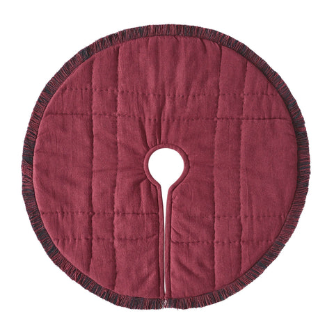 Add rustic style to your Christmas traditions with the Boone Trace Red Black Plaid Tree Skirt. The round tree skirt features a classic red and black plaid pattern which adds a warm, cabin feel to your Christmas look. A unique frayed edge adds a textured element to the design. The timeless Christmas tree skirt is made for yearly use with a recycled cotton polyester blend base and a single layer of poly fill with quilting designed to mimic the plaid pattern. Coordinates with the Boone Trace Collection for rustic country style for your whole home.