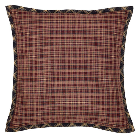 With bold rust, brown, and gold plaid, the Brick Raven Fabric Filled Pillow 16x16 is a statement in country charm. The pillow is tastefully bordered with a straight edge black and creme plaid binding. Reverses to two tie closures.