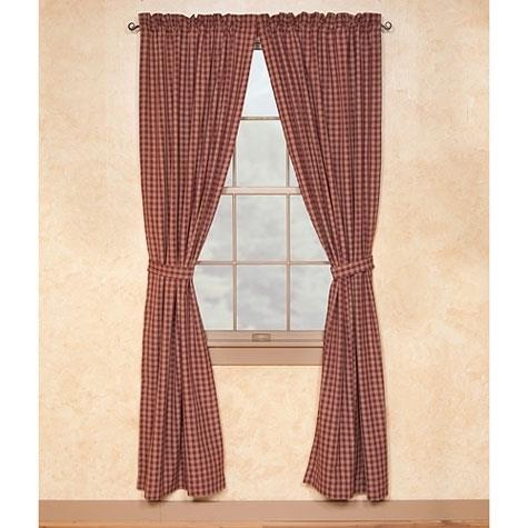 The Bridgeton Wine Long Panel Curtains 84" tastefully features burgundy and tan plaid. It's the perfect blend of farmhouse elegance and country charm. Lined with white cotton.