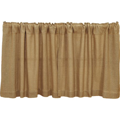 With exceptional versatility and simplicity, the Burlap Natural Tier Curtain Set brightens your home in old-fashioned country style. Crafted in a tightly woven, soft cotton burlap and finished with a standard 2-inch hem fold at the bottom, these L24xW36 dark tan curtains let the light into a room while still maintaining your privacy. Place our relaxed yet fashionable country curtains in the living room, dining room, kitchen, or bedroom to transform a room with cozy texture. Machine washable and iron-safe, this warm, rustic 100% cotton curtain set comes with two tiers that have rod pockets for easy hanging.