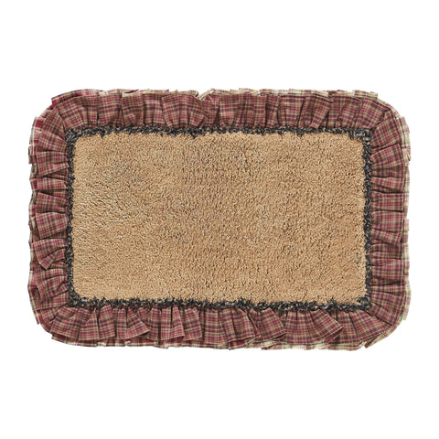 Step out of the shower and into cozy rustic country bliss. The Brick Raven Bath Mat features a solid tan core in premium, ultra absorbent cotton. It is trimmed with a ruffled plaid fabric in deep tones of brick red, black and tan. Backed with textured rubber to produce a quality, non-slip surface without the need for a separate rug pad. This ruffled bath mat is a great finishing piece for bathrooms or laundry rooms where you need the perfect balance of style and functionality.