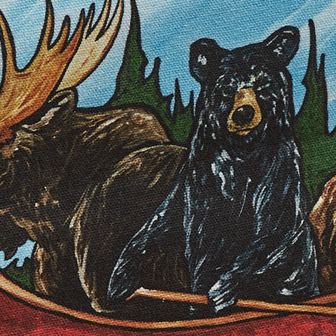 Bring the beauty of nature indoors with our Summer Vacation Table Runner 54". It features a unique design of bear, moose and beaver wildlife in a canoe outdoor scene on each end. Crafted with sturdy cotton material, the table runner is perfect for adding a touch of nature to your dining table.