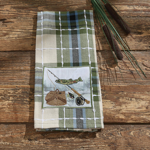Add an outdoor country touch to your kitchen with our Troutman dish towel. This dish towel will serve as the perfect kitchen décor and/or gift with its fish graphics. Measures 18" x 28". Towel Color: green, tan, blue, black, brown, red and white