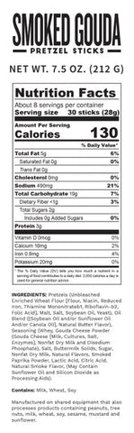 Smoked Gouda is a buttery, creamy smooth pretzel with salty notes. And well, just plain ole’ nutty. Smoked Gouda cheese is smoked in brick ovens over flaming hickory chips. Did you know Smoked Gouda cheese is best served at room temperature? We are one step ahead with this salty snack straight off the shelf, room temperature and all, this will practically melt in your mouth. Pop Daddy's hand-seasoned batches ensure that every pretzel stick is layered in the goodness that is gouda!