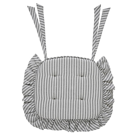 Farmstead Black Ticking Stripe Ruffled Chair Pad