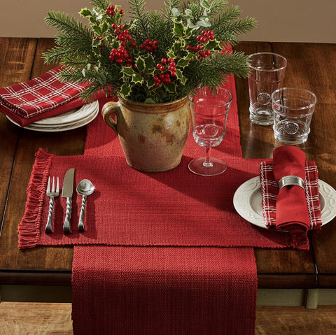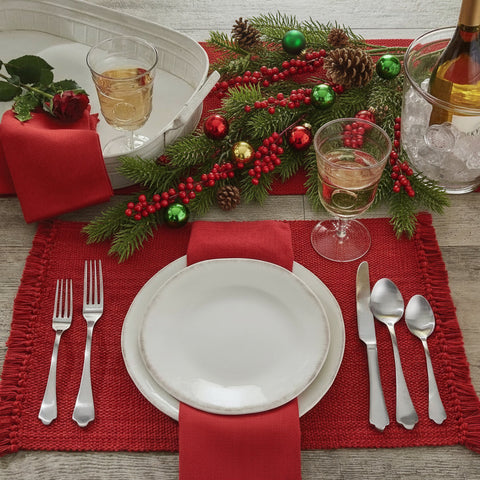 Add casual elegance to your dining table with our Brookline Red Placemat Set of 4. The placemat features woven red cotton fabric. Perfect for any time of the year.