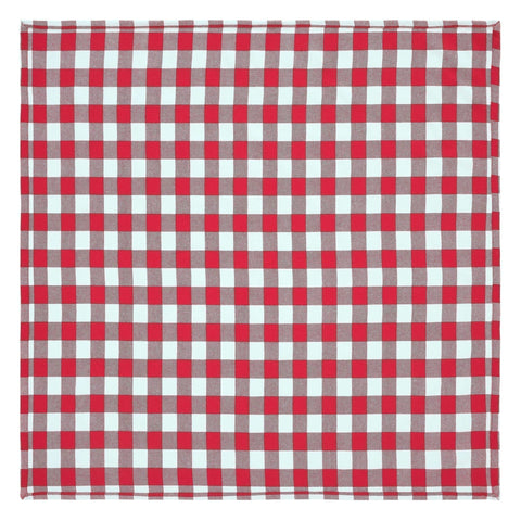 • This square table topper showcases a timeless buffalo check pattern, creating a cozy and inviting atmosphere in the vibrant Country Red color.