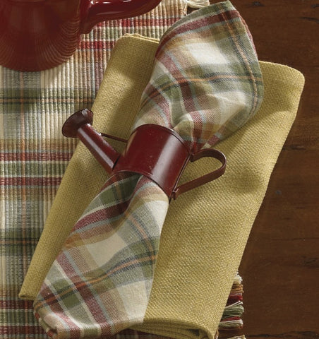 Decorate your kitchen table setting with our Lemoncrest Napkins. Add this country farmhouse style, cotton napkin to your table featuring green, red, lemon gold, and white plaid fabric. Set of 4 Napkins.