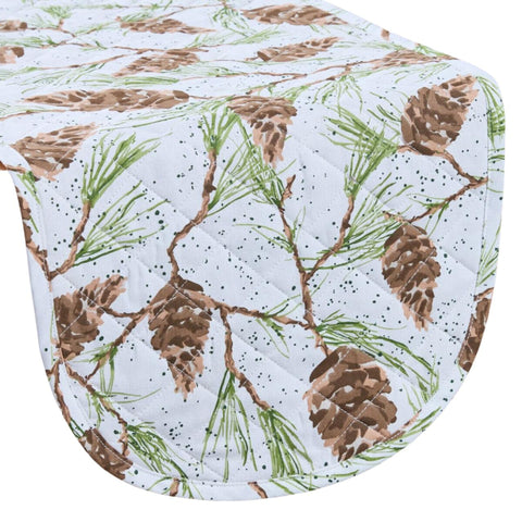 Add a cozy primitive touch to your kitchen with our Pineview Lodge Quilted Table Runner. Featuring a beautiful array of pinecones design in white, brown and green, it's perfect for adding texture and warmth to any table. This table runner is a must-have for any rustic country kitchen.