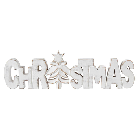 Elevate your winter and Christmas decor with the charming Tropical Wood CHRISTMAS Carved Wooden Sign. Crafted from tropical wood, this exquisite sign features a cutout design of the word "Christmas" adorned with a festive tree motif, adding a touch of seasonal elegance to your tabletops and shelves. Measuring 15 inches in length, 4.25 inches in width, and 1 inch in height, it serves as a captivating centerpiece that captures the essence of farmhouse and country-inspired Christmas themes. The light wood tan and light creme color palette of this carved wooden sign complements a variety of interior decor styles, infusing your home with rustic charm and warmth. Its farmhouse Christmas design, coupled with carved graphics and a distressed appearance, exudes a cozy ambiance that invites comfort and joy into any space. Whether placed in the dining room, entryway, kitchen, or living room, this sign serves as a delightful accent piece that celebrates the spirit of the season.