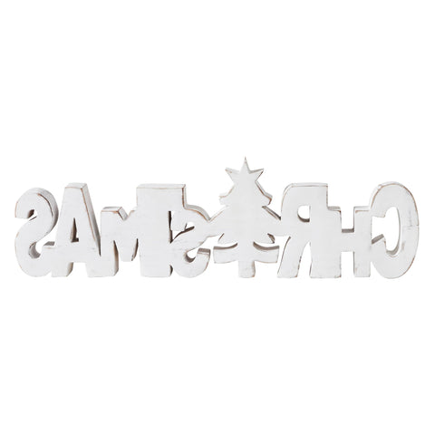 • Crafted from tropical wood, this sign features a charming cutout of the word "Christmas" accompanied by a festive tree motif, adding a rustic touch to your tabletops and shelves.