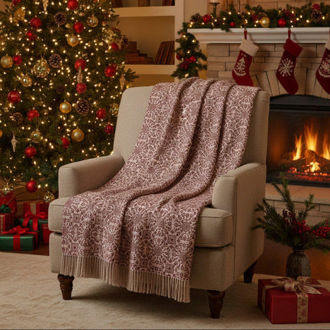 Enhance the cozy ambiance of your bedroom and living room with our Medallion Burgundy & Tan Jacquard Woven Throw. This 50x60-inch cotton blanket features a charming primitive country medallion pattern that adds a touch of timeless style. The natural hues and textured waffle weave fabric combine to create a warm and inviting atmosphere in your home. The primitive medallion design on this woven throw exudes country elegance, making it a standout piece in your decor. The textured waffle weave not only adds rustic charm but also ensures a soft and comfortable feel. Whether you're wrapping up in it for extra warmth or displaying it as an accent, this throw effortlessly complements your interior design. The Burgundy & Tan Jacquard Woven Throw offers the perfect blend of style and comfort with its intricate medallion pattern and textured waffle fabric. Whether you're snuggling on chilly evenings or using it as a decorative piece, this blanket brings character and warmth to your living space.