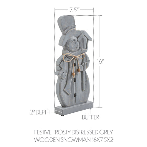 Festive Frosty Distressed Grey Wooden Snowman