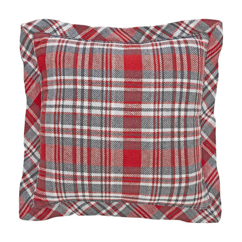 • Flanged Edging — A plaid flanged edging highlights the charming central design. Reverses to coordinating gray and red plaid fabric.