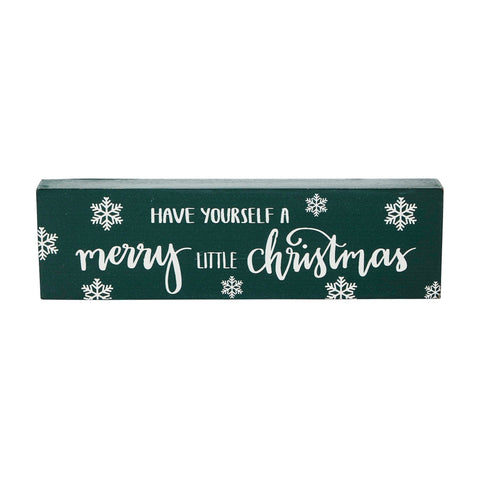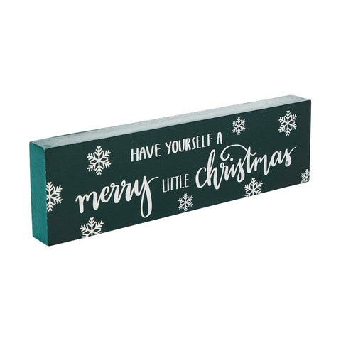 - Elevate your tabletop decor with this charming block sign measuring 3x10 inches, featuring the timeless message "Have Yourself a Merry Little Christmas" in elegant text.