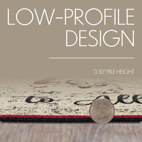 Add a retro pop to your entryways this Christmas with a vintage inspired rug with texture and charm. The Jolly Ole Santa Braided Jute Rug includes one oval rug measuring 17 x 36 inches. A unique blend of jute and recycled cotton are braided to form a deep creme base with a red and black striped edging. The central creme weave is printed with a vintage inspired Santa that is surrounded by the words, Merry Christmas to All. Spot clean as needed.