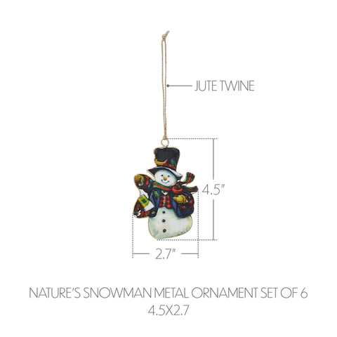 Nature's Snowman Metal Ornament Set of 6