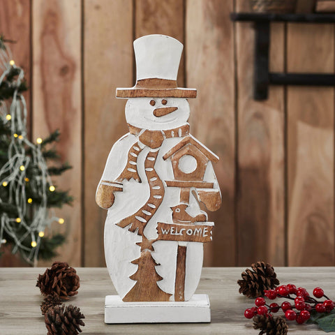 Snowman Welcome Carved Wooden Figurine – Lange General Store