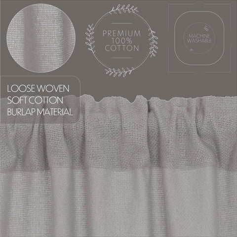Transform your kitchen window with calming simplicity and vintage charm. The Burlap Dove Grey Valance brightens your home with a relaxed, yet stylish farmhouse style. Crafted in a soft cotton burlap and finished with a standard 2-inch hem fold at the bottom, this classic grey curtain lets light into a room while still maintaining your privacy. Place our classic grey valance in the kitchen, dining room, or washroom for added texture and charm. Machine washable and iron-safe, this 100% cotton curtain includes a rod pocket for easy hanging.