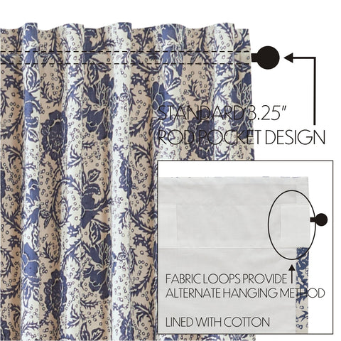 Add farmhouse decor to your window with the 96x50 Dorsey Navy Floral Extra Long Single Panel. Soft white cotton lines the inside of the panels with a straight edge that showcases the beautiful navy blue hue. Easily hang the farmhouse decor floral panel with the 3.25"