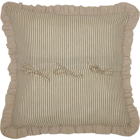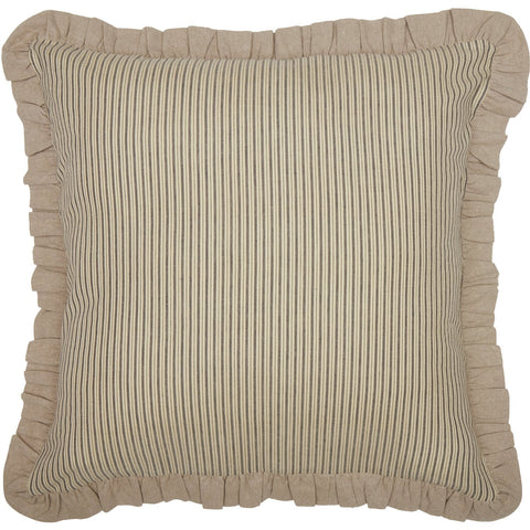 Brighten up your vintage farmhouse space with the Owens Mill Ticking Stripe Euro Sham. Charcoal and antique creme ticking stripe is trimmed with a khaki tan ruffle.