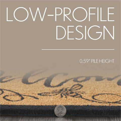 - Inviting Aesthetic: Features charcoal grey "Welcome" lettering on a natural tan coir base, with charming honey bees stenciled around, creating a friendly and warm entry for visitors.