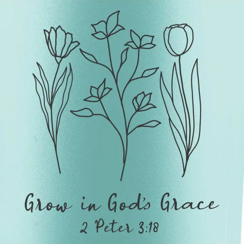 Bloom and grow with this appealing “Grow In Grace” Stainless-Steel Mug w/Straw by Kerusso® in Teal. A practical two-in-one lid allows you to sip your drink with the flip lid, or drink from the Stainless-Steel Straw with Silicone tip. Take this attractive mug along for hydration on the go, at the gym, or at the office. Speak life and love into others by sharing God’s grace at every turn. Tell the people you know how faith has transformed your life, and what a personal relationship with Jesus means to you. And when the sun shines and you’re in full bloom, give God the glory!