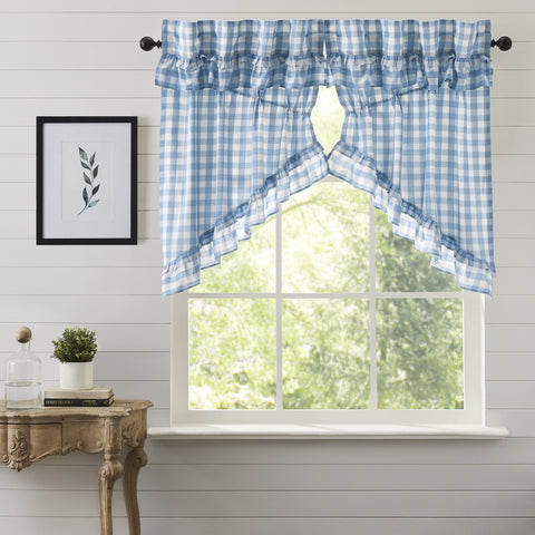 Dusk Buffalo Blue Check Ruffled Prairie Swag Curtains