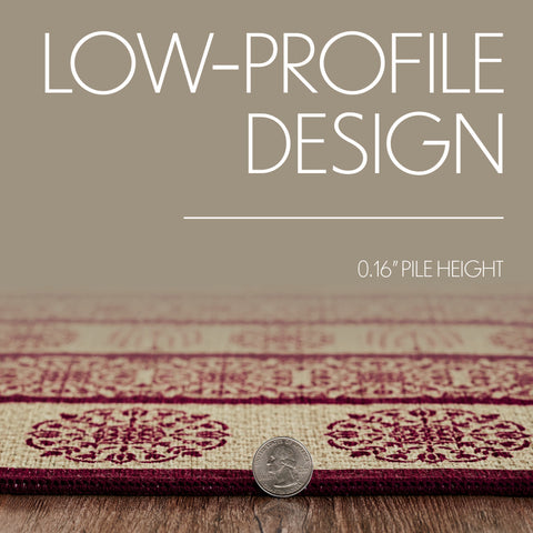 - Enhance your home decor with Medallion Burgundy Tan Jacquard Rug/Runner Rect, featuring a no-slip latex backing and captivating burgundy medallion and willow tree design that harmoniously complements your primitive and country-themed interiors.