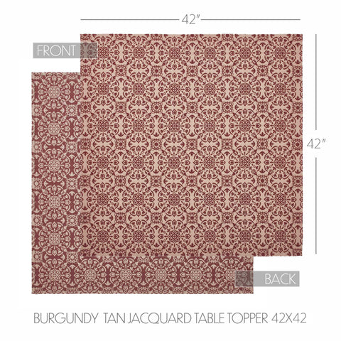 - The Medallion Burgundy & Tan Jacquard Table Toppers, measuring in two different sizes, adds a touch of primitive country charm to your kitchen and dining room decor.