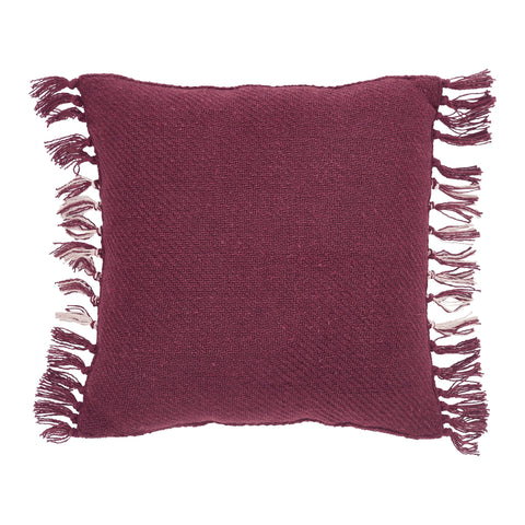 Add dramatic fall style to your home with bold, dark color and traditional plaid. Our Exton Burgundy Tan Plaid Pillow measures 12x12 inches and is constructed with recycled cotton and a cotton polyester blend. The throw pillow features a deep burgundy base with dark tan striping in a tartan plaid pattern. Exaggerated tassels create a unique look. Spot clean as needed.