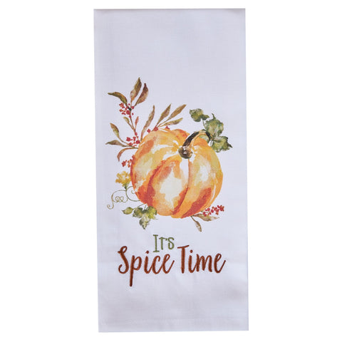 Add a Fall touch to your kitchen with our It's Spice Time Dishtowel.  Features embroidery with pumpkin design.