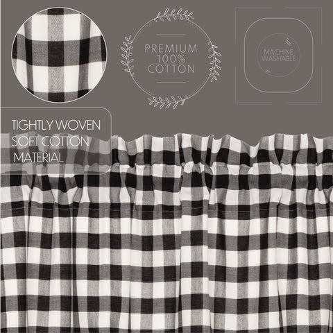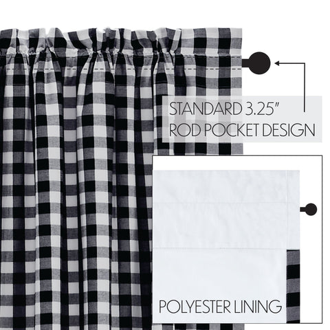 Black and white checks create the perfect accent to your modern farmhouse window decor. The Sable Ann Buffalo Check Blackout Panel includes a single 84x50 inch cotton window panel with a matching tie back. The room darkening panel includes a blackout lining crafted from 100 percent polyester to add practical benefits without sacrificing style. The panel is easy to hang with a generous 3.25 inch rod pocket with a 2 inch header. Machine washable and iron safe.