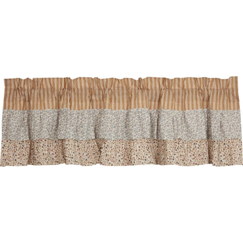 Bring the quiet and quaint fairytale cottage vision to life with our Kayley Gold Ticking Ruffled Valance. This gold and creme stripe curtain is beautifully decorated with graceful floral print ruffles towards the top that add rustic romance and heartwarming, cozy cottage vibes to your window.