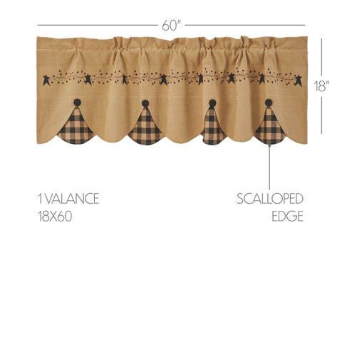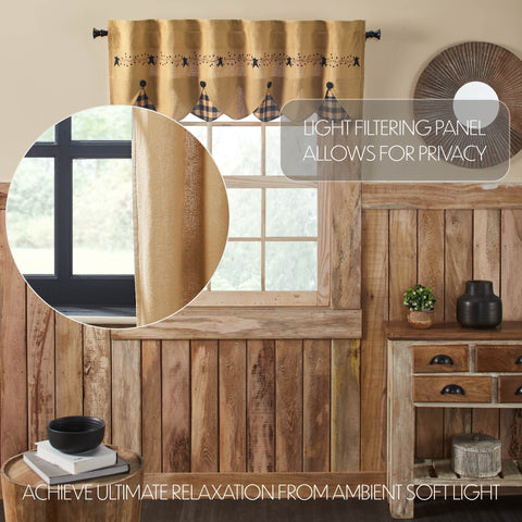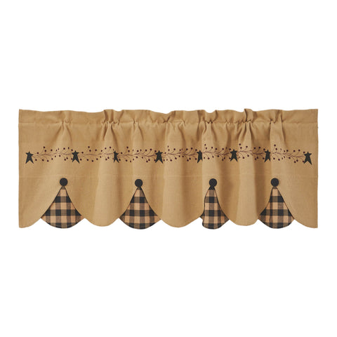 Introducing the Pip Vinestar Scalloped Layered Valance, a charming addition to your primitive and country-themed decor. This 18x60-inch lined window treatment brings a touch of rustic charm to your bedroom, living room, dining room, or kitchen. Made from high-quality burlap cotton in a natural hue, with woven star patterns, it seamlessly blends with the Pip Vinestar Collection. Crafted with precision, the scalloped layered design adds depth and texture to your windows, creating an inviting ambiance. The woven cotton ensures durability and easy maintenance, making it a practical choice for any room in your home. Elevate your interior with this valance, showcasing the perfect blend of style and functionality for a cozy, country-inspired atmosphere that captures the essence of primitive living.