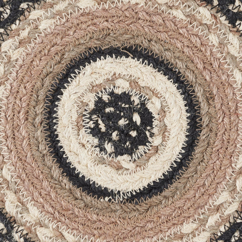 Protect your furniture in farmhouse style with our Farmstead Charcoal Braided Round Trivet 8". This 8 inch rustic table trivet is the perfect feature to stop heat from hot pots and pans from destroying a valued table or countertop. The homemade feel comes to life with the woven braided jute wool blend fabrics in asphalt charcoal, bleached white cream, and grey-taupe displayed in concentric circles. Sold individually.