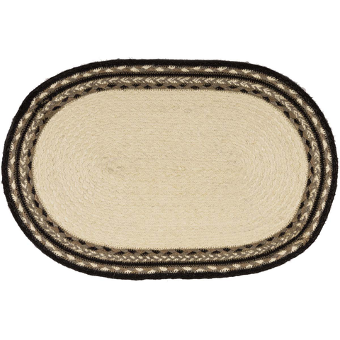 The country farmhouse Farmstead Charcoal Poultry Braided Jute Placemat Set of 6 is a true "from farm to table" addition to your home. In the center of each placemat you'll find a rooster and hen, both stenciled in distressed black over ivory and surrounded by concentric braids of black, grey taupe, silver, and ivory.